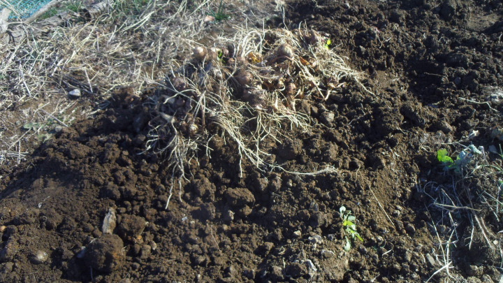 菊芋は春先には芽吹くので掘出す(写真ー2)。味噌漬けは我家の定番の漬物で欠かせない。