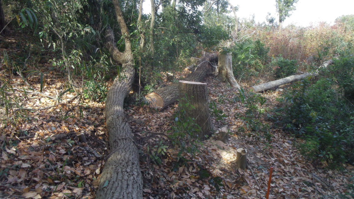 昨年25日から始めたコナラの伐倒作業も開始した(写真ー4・5)。友の別荘の薪ストーブの薪が主目的だ。我がシイタケは気象条件が悪化し不調で、乗り気がしない。 だがコナラの伐倒は人の為、世の為にもなる。