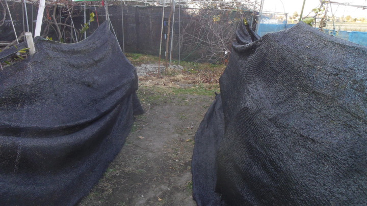 昨年12月22日より始めたミカンの防寒養生対策の遮光ネット張り作業が年を越し5日より防寒養生作業が農作業初めだ。